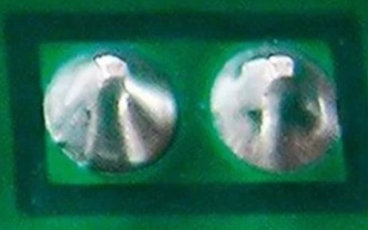 Solder bridges between adjacent pads |